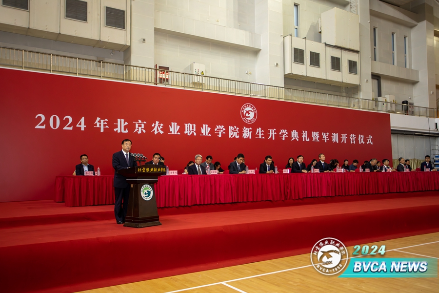 范雙喜以“錘煉富農強農精湛技能勇擔鄉村振興時代重任”為題發表熱情洋溢的致辭。他對步入農職校園的3000余名新生表示熱烈的祝賀,用深厚的歷史、驕人的成績闡釋了學校的紅色基因、農業基因、職教基因,并對新生提出三點希望:一是做胸懷遠大理想的青年,心懷“國之大者”,筑牢理想信念,弘揚農職精神,把青春奮斗融入黨和人民事業,讓理想信念在奮進中綻放青春之花;二是做勇于擔當作為的青年,始終保持學習的韌勁和恒心,不斷豐富和拓展知識,錘煉富農強農的精湛技能,為青春遠航插上展翅高飛的翅膀;三是做善于團結進取的青年,加強品德修養,學會同他人合作,堅持知行合一、勇于奮斗,用辛勤勞動在充滿希望的田野譜寫青春華章。同時,也對參訓學生提出“培育優良作風,厚植家國情懷;遵守軍訓紀律,尊敬軍訓教官;講求團結協作,確保安全施訓”明確要求。