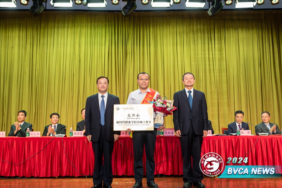 會上,黨委書記周志成,黨委副書記、院長范雙喜為“全國優秀教師”“教育部新時代職業學校名師”園藝園林學院教授高照全授名師牌。