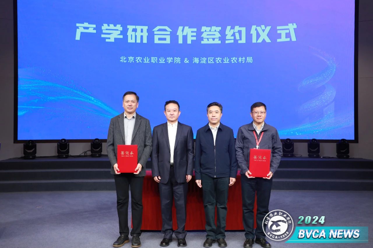 楊博為海淀區(qū)農(nóng)業(yè)技術(shù)綜合服務(wù)中心頒發(fā)中國(guó)現(xiàn)代設(shè)施農(nóng)業(yè)行業(yè)產(chǎn)教融合共同體理事單位牌匾。智慧農(nóng)業(yè)工程學(xué)院黨總支副書記、院長(zhǎng)楊學(xué)坤與海淀區(qū)委農(nóng)村工作委員會(huì)書記、北京市海淀區(qū)農(nóng)業(yè)農(nóng)村局局長(zhǎng)張春明共同簽署產(chǎn)學(xué)研合作協(xié)議書。此次合作將充分發(fā)揮政府、學(xué)校及共同體的協(xié)同作用,在就業(yè)推薦、頂崗實(shí)習(xí)、實(shí)訓(xùn)基地建設(shè)、員工培訓(xùn)等多個(gè)方面開(kāi)展合作,共同打造產(chǎn)教融合的新生態(tài),助力“未來(lái)農(nóng)業(yè)”發(fā)展。