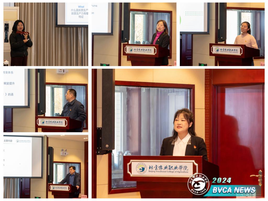 各小組分別匯報了《新質(zhì)生產(chǎn)力驅(qū)動職業(yè)教育“三教”改革研究》《學(xué)校青年教師職業(yè)發(fā)展存在的問題及解決思路》《學(xué)??蒲信c服務(wù)情況調(diào)研及建議》《學(xué)校人才培養(yǎng)現(xiàn)狀分析及高質(zhì)量發(fā)展建議》《打造產(chǎn)教融合新引擎,激活人才培養(yǎng)新動力——學(xué)校實習(xí)實訓(xùn)條件調(diào)研及建議》五個課題的研究情況,展示了青年干部在產(chǎn)教融合、人才培養(yǎng)、師資建設(shè)等方面的深度思考與實證研究。