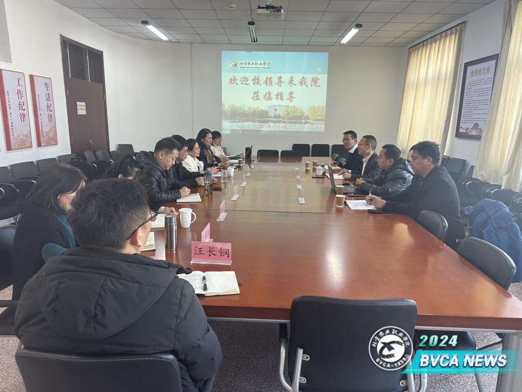 動物科技學院黨總支書記劉洪超、院長周珍輝就學院機構設置、師資隊伍、教學管理、學生管理、實訓基地、雙高專業群申報等工作進行了詳細匯報。與會人員圍繞“新雙高”建設、科研服務等方面進行了深入交流。