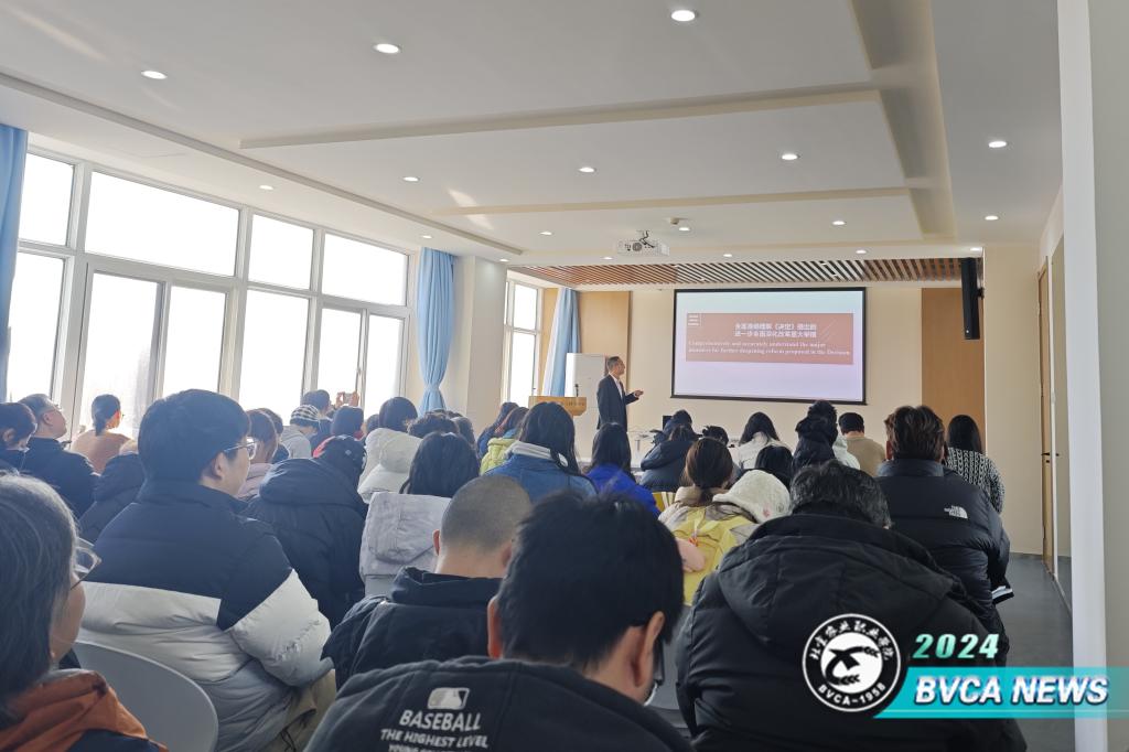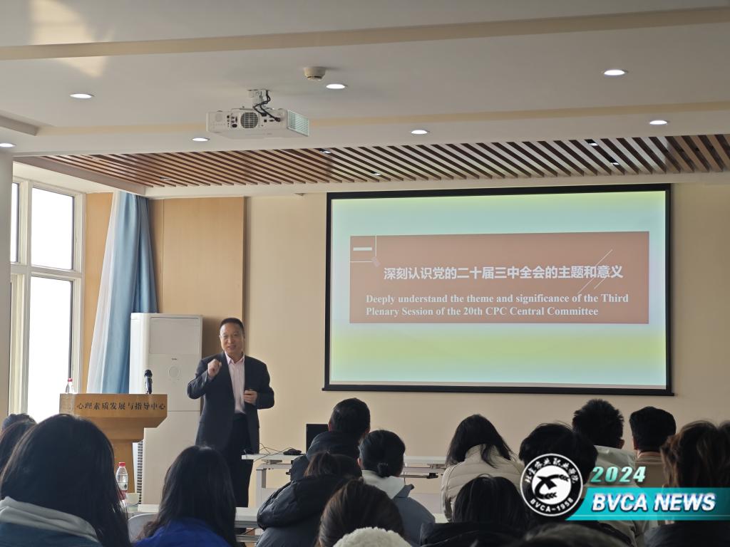張德強以“深入學習貫徹黨的二十屆三中全會精神,持續推動農職院高質量發展”為主題,從四個方面與老師和同學們進行交流。一是深刻認識黨的二十屆三中全會的主題和意義。二是進一步深刻認識全面深化改革的指導思想、總目標和原則。三是全面準確理解《決定》提出的進一步全面深化改革的重大舉措。四是嚴格貫徹落實全會精神的基本要求,奮力書寫中國式現代化的北京農職新篇章。