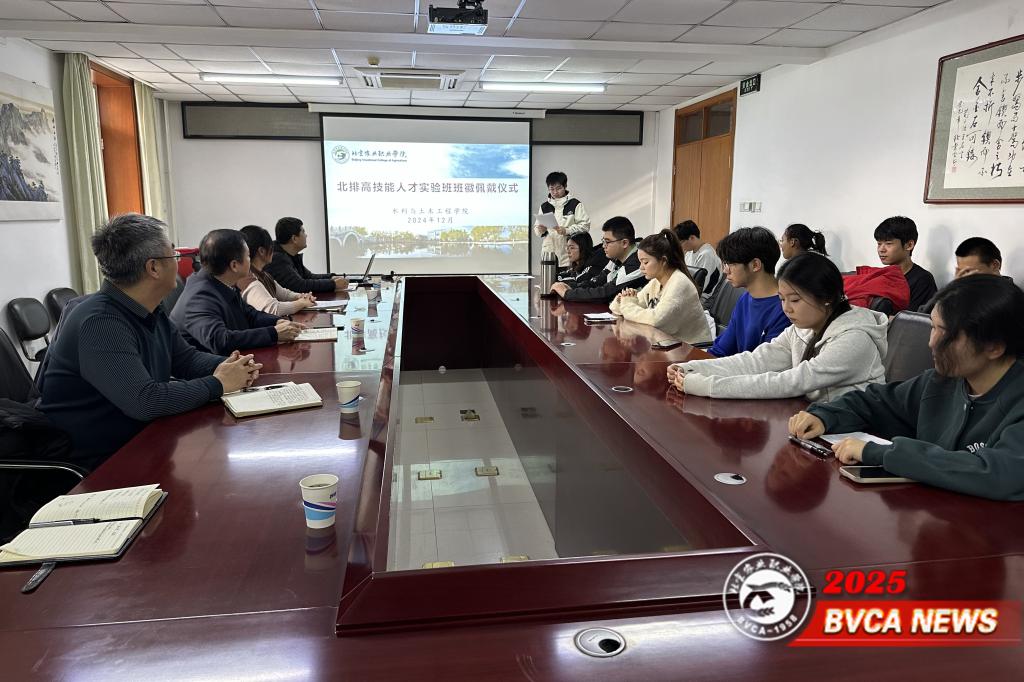 2024年12月30日,排水2412班——北排高技能人才實驗班班徽佩戴儀式在圖書館順利召開。學校黨委副書記周洪生參加儀式,學院黨總支書記王雪婷主持。
