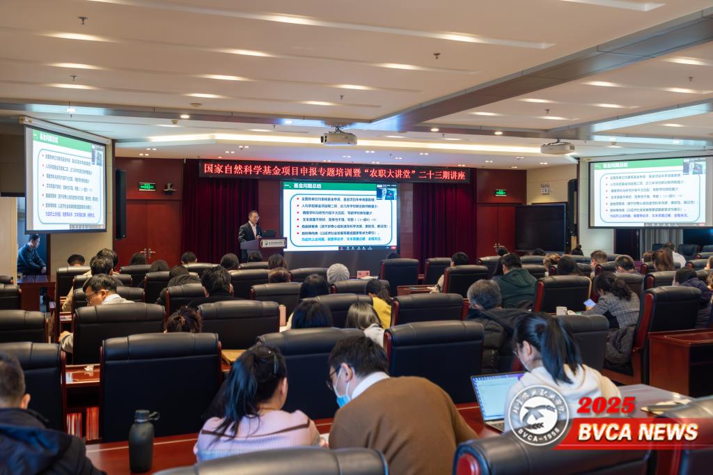 為深入貫徹落實學校第四次黨代會戰略部署,提升科研人員的創新能力和科研素養,提高科研層次和水平,促進學校科技創新高質量發展。1月15日下午,學校舉辦國家自然科學基金項目申報專題培訓暨“農職大講堂”二十三期講座,特邀學校黨委副書記、院長張德強教授做2025—2026年國家自然科學基金項目申報動員會專題報告。黨委常委、副院長楊博主持。