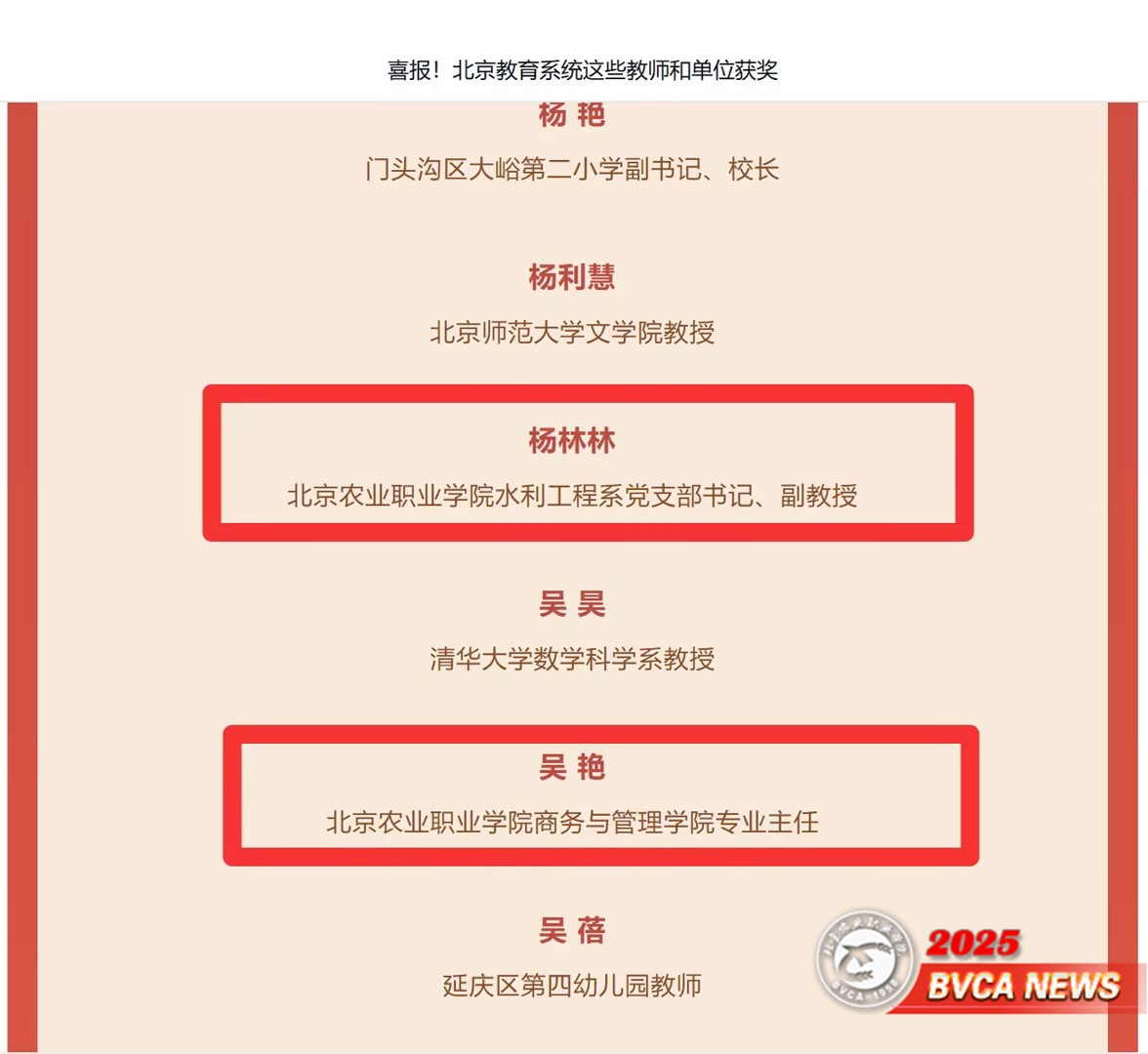 我校水利與土木工程學院副院長、水利工程系黨支部書記、副教授楊林林,商務與管理學院現代物流管理專業主任吳艷榮獲北京市三八紅旗獎章。