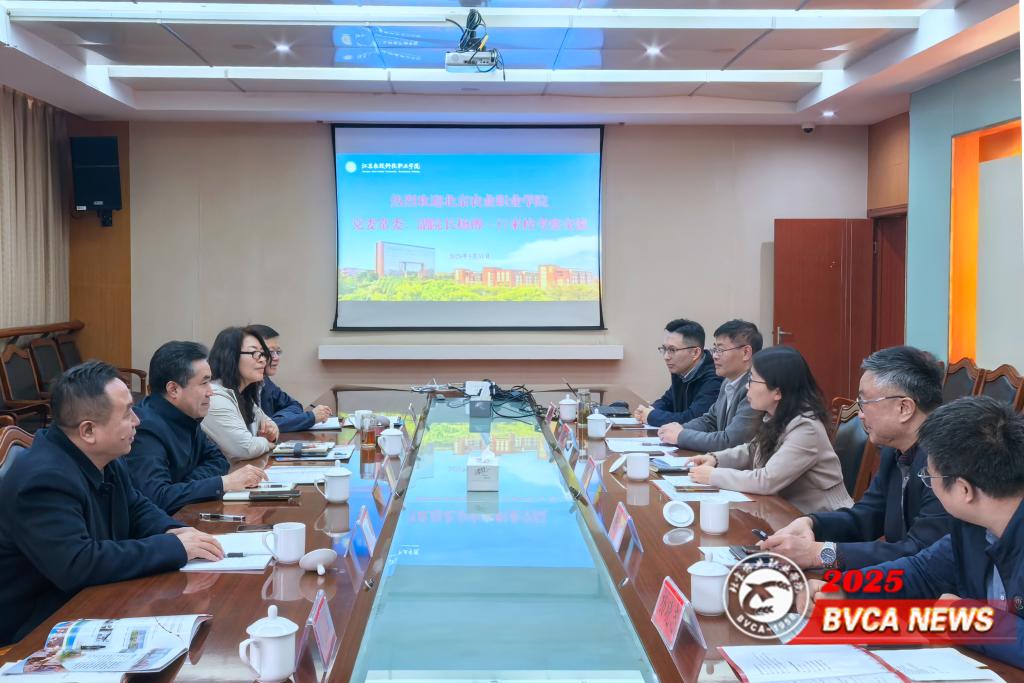 江蘇農牧科技職業學院黨委副書記鄭義,上海農林職業技術學院院長陳立婧和黨委副書記、副院長邵陽,金華職業技術大學副校長陳夙熱情接待了調研組一行。各校相關部門負責人參與座談,圍繞師資隊伍建設、橫向科研項目管理、社會培訓、服務鄉村振興等方面工作開展深入交流,共同探討職業教育高質量發展的新路徑。