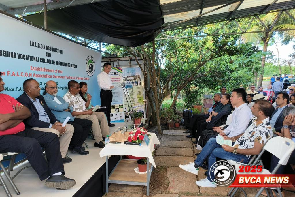 在毛里求斯,訪問(wèn)團(tuán)首站與福爾肯聯(lián)盟舉行隆重的“北京農(nóng)業(yè)職業(yè)學(xué)院-毛里求斯福爾肯聯(lián)盟海外農(nóng)業(yè)技術(shù)培訓(xùn)中心”授牌儀式,谷天剛為福爾肯聯(lián)盟授牌,并發(fā)表致辭,雙方簽署海外農(nóng)業(yè)技術(shù)培訓(xùn)中心合作協(xié)議,標(biāo)志著雙方在農(nóng)業(yè)技術(shù)培訓(xùn)、人才本土化培養(yǎng)領(lǐng)域的合作進(jìn)入新階段。毛里求斯農(nóng)業(yè)產(chǎn)業(yè)、食品安全、藍(lán)色經(jīng)濟(jì)和漁業(yè)部部長(zhǎng)阿爾文.布勒爾,社會(huì)綜合、安全和國(guó)家團(tuán)結(jié)部部長(zhǎng)阿紹科.蘇伯侖等出席儀式,當(dāng)?shù)刂髁髅襟w全程該報(bào)道。