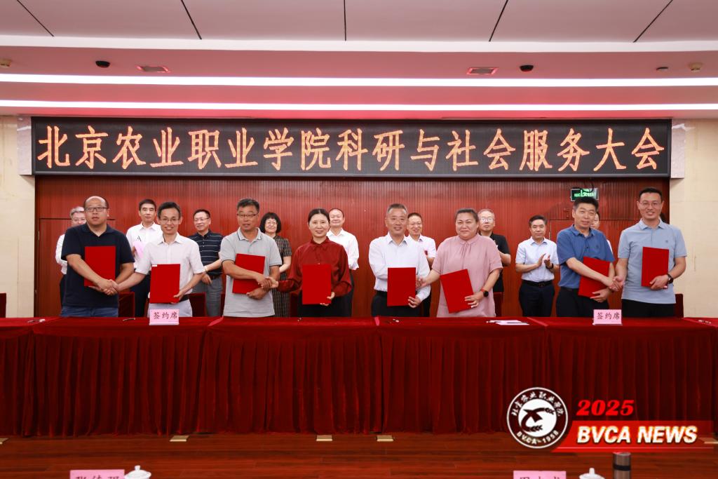 園藝園林學院、動物科技學院、食品與生物工程學院、商務與管理學院分別與相關行業企業簽訂橫向科研項目協議。合作企業代表,北京市長陽農場有限公司黨總支書記、董事長郭建波就雙方長期深度友好合作發言。