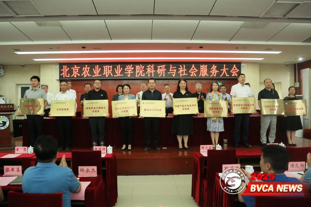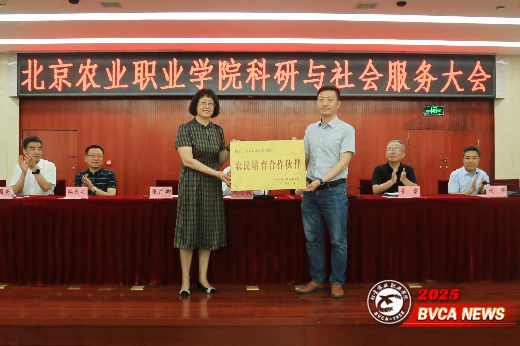 校領導為10個校級科研實驗室授牌。中央農業廣播電視學校黨委副書記、紀委書記張廣卿為北京農業職業學院授予“農民培育合作伙伴”單位稱號并授牌。