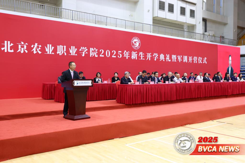 張德強代表學校全體師生向3900余名新生表示熱烈歡迎,介紹了學校深厚的歷史底蘊、辦學特色、職教口碑、資源優勢,為同學們上了一堂思政課,并寄語新生四句話:一是“腳下沾泥土,心中有熱愛”,做懂農業的追光者,要珍惜實訓機會,真正讀懂土地、糧食和農業的使命;二是“手中有絕活,肩上有擔當”,做精技能的實干家,將技術轉化為服務三農的實際能力;三是“眼里有全局,胸中有格局”,做愛農村的奉獻者,深入基層,關心農村發展,助力鄉村振興;四是“身上有書卷氣,腳下有煙火氣”,做會生活的追夢人,在學習和生活中找到平衡,既積淀學識,也體驗生活。同時,面對即將開始的軍訓,他希望同學們以軍人標準嚴格要求自己,做到嚴守紀律、磨礪意志、團結協作,早日淬煉成為一名優秀的“農職人”。