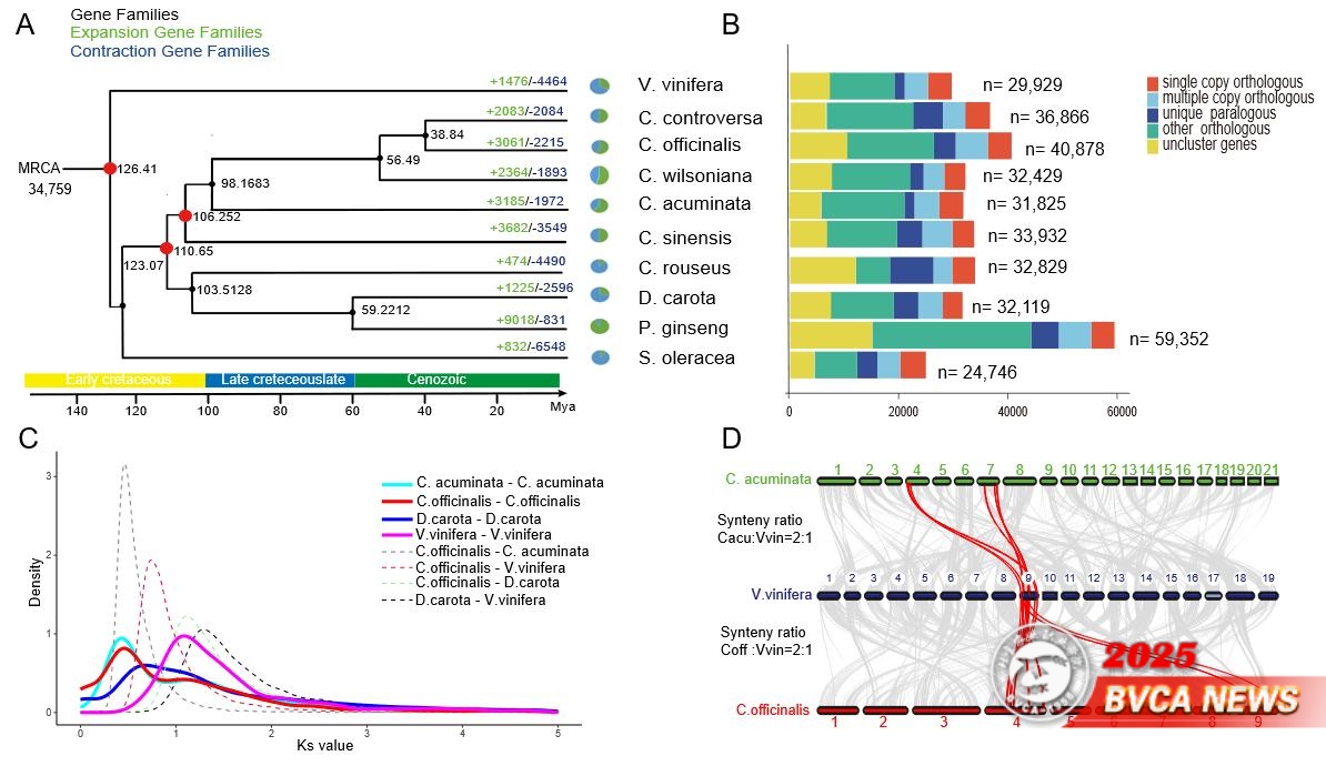 圖2山茱萸基因組的系統演化分析