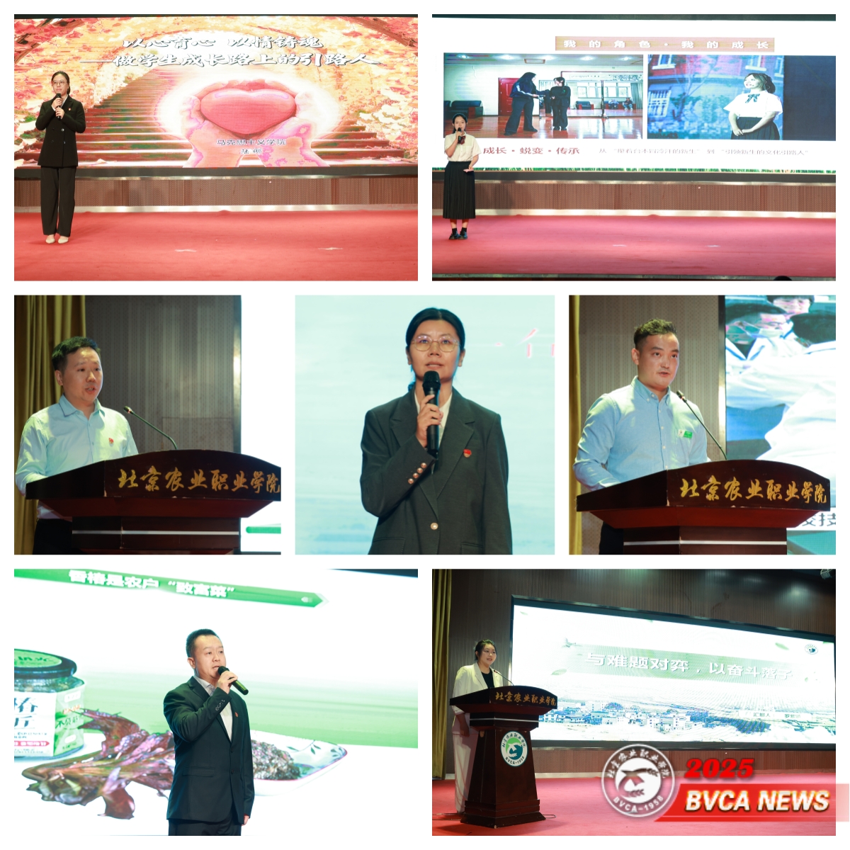 大會(huì)還舞臺(tái)給師生,7名師生代表講述了以文潤(rùn)心、以情暖校的育人故事。馬克思主義學(xué)院教師陸娜講述“以心育心、以情鑄魂”的思政育人故事。食品與生物工程學(xué)院食品安全系主任王輝、學(xué)生羅紫涵講述用世賽金獎(jiǎng)詮釋傳承三大基因的團(tuán)隊(duì)備賽經(jīng)歷。學(xué)生工作部心理素質(zhì)發(fā)展與指導(dǎo)中心主任王傳宏講述學(xué)工隊(duì)伍如何用信任、覺察與協(xié)同,詮釋立德樹人的擔(dān)當(dāng)。大學(xué)生藝術(shù)團(tuán)話劇團(tuán)的羅曉宇同學(xué)講述了她連續(xù)兩年在《印象耕讀》舞臺(tái)劇中飾演“學(xué)姐”的成長(zhǎng)故事。后勤保障部電工李繼邦師傅講述“匠心守護(hù)校園事,情系師生每一天”的服務(wù)育人故事。動(dòng)物科技學(xué)院的宋玉坤老師講述從農(nóng)職學(xué)子到農(nóng)職教師的成長(zhǎng)故事。