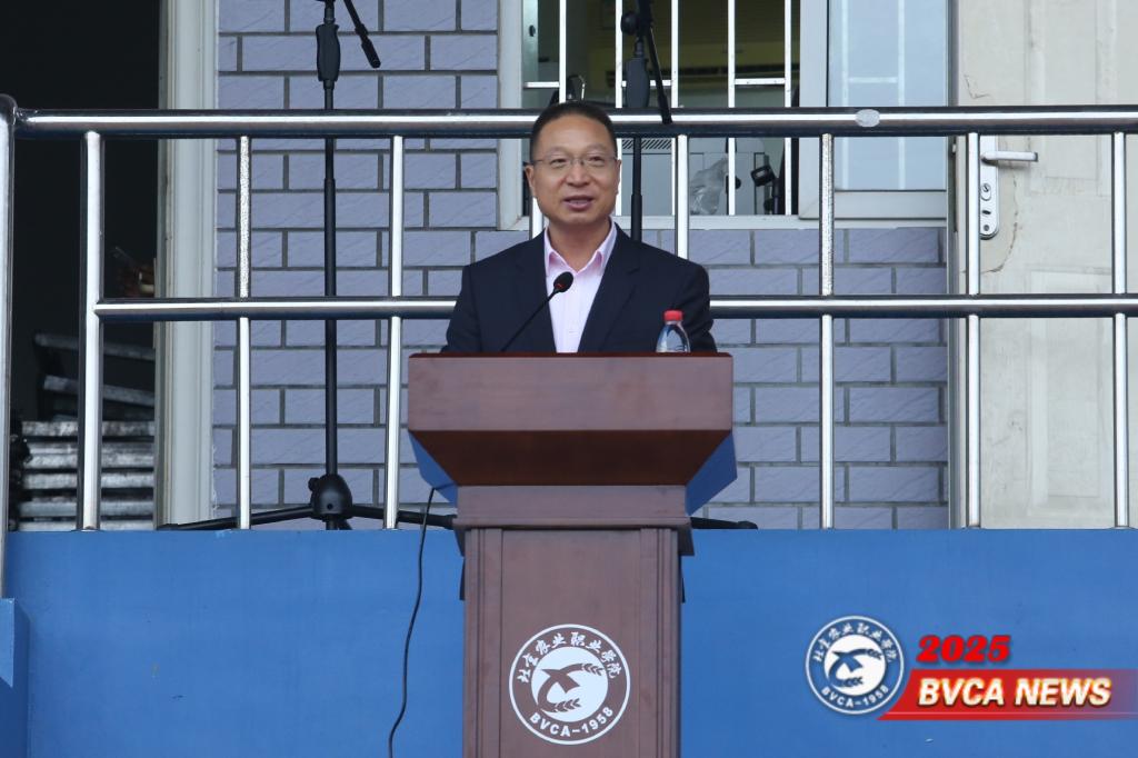 黨委副書記、院長張德強致開幕辭,他指出,加強體育工作是我校全面貫徹黨的教育方針,落實素質教育的重要體現。學校黨委堅持以立德樹人為根本任務,致力培養德智體美勞全面發展的合格人才。牢固樹立健康第一的教育理念,將體育作為教育工作中的重要一環和提升學生綜合素質的基礎性工程,充分發揮其養德、益智、勤勞、尚美的育人作用,幫助學生在體育鍛煉中享受樂趣、增強體質、健全人格、錘煉意志,有力促進了競技體育和群眾體育的蓬勃發展。他肯定了學校體育工作在過去的一年里取得的優異成績,成績的取得,彰顯了校園體育精神的傳承。他對本屆運動會提出四點希望,一是希望全校師生要弘揚良好的體育精神;二是要遵守嚴明的運動紀律;三是希望全體師生展示出良好的文明風貌;四是希望大家要形成并保持良好的運動習慣。