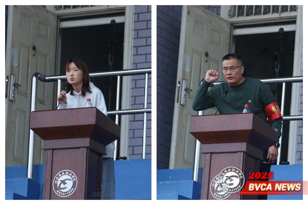 首都高校田徑錦標賽女子跳高冠軍動物醫學專業2412班周靜怡同學、通識教育學院教師趙宏宇分別代表全體運動員、裁判員宣誓。