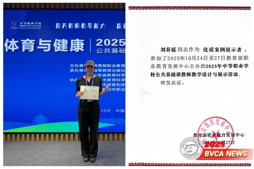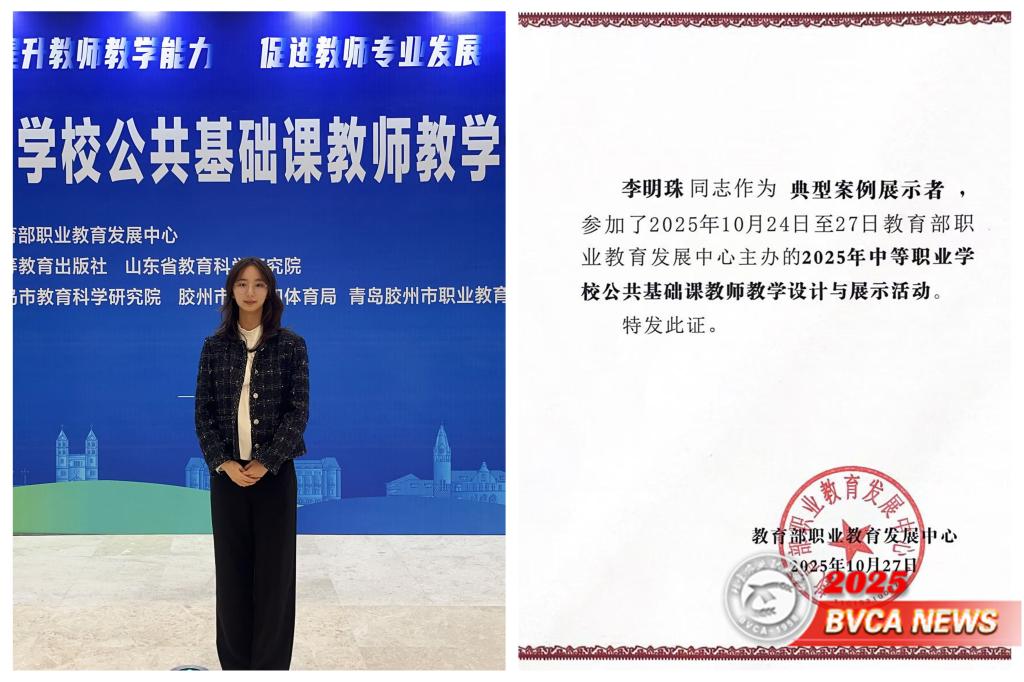 10月24日至27日,由教育部職業教育發展中心主辦的2025年全國中等職業學校公共基礎課教師教學設計與展示活動在青島舉行。我校馬克思主義學院李明珠、通識教育學院曾崇達和劉春延三位老師分別代表北京市思政學科、英語學科和體育學科參賽。憑借扎實的教學功底,創新的教學設計和出色的現場表現,李明珠老師和曾崇達老師榮獲“典型案例展示者”稱號(一等獎),劉春延老師榮獲“優秀案例展示者”稱號(二等獎)。