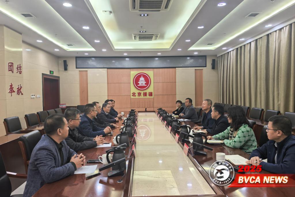 調(diào)研組拜訪北京市支援合作工作領(lǐng)導(dǎo)小組新疆和田指揮部,匯報(bào)學(xué)校援疆工作考慮和調(diào)研情況,雙方就援疆和田項(xiàng)目落地細(xì)節(jié)開展深入磋商。北京市援疆和田指揮部黨委書記、指揮,和田地委副書記李志遂參加座談。