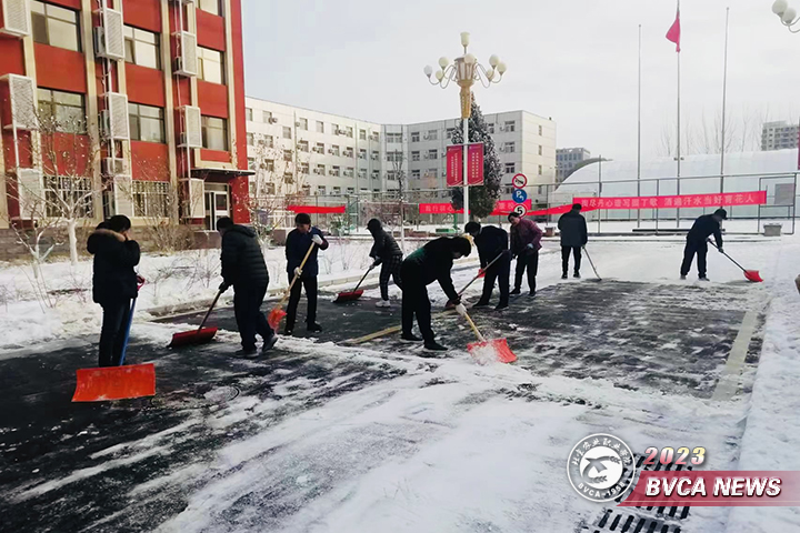 應(yīng)對大雪天氣,后勤保障部提前部署、劃分區(qū)域,組織內(nèi)保、外保四校區(qū)共103余名物業(yè)人員迅速集結(jié),高效分工,采用人工掃雪的綠色方式,以推、鏟、揚(yáng)、堆各種辦法快速掃雪除冰。在零下4度的天氣下大家不畏嚴(yán)寒、埋頭苦干,齊心協(xié)力、緊密協(xié)作,以實(shí)際行動促道路暢通、保校園安全。經(jīng)過兩個多小時的奮戰(zhàn),在師生上班上學(xué)早高峰來臨前,四校區(qū)公寓樓、教學(xué)樓、食堂周邊等主要道路的積雪已被清掃干凈,“綠色通道”順暢打通。
