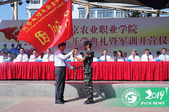 李云伏同志向軍訓團授軍訓團團旗,并宣布北京農(nóng)業(yè)職業(yè)學院2019級新生軍訓開營。