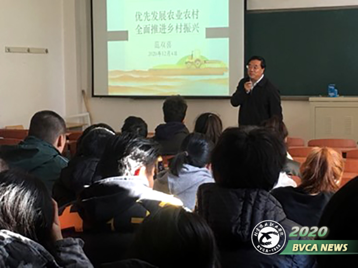 12月4日,黨委副書記、院長范雙喜走進課堂,為綠檢2013、2014班的同學們講授主題為“優先發展農業農村,全面推進鄉村振興”的思政課。范雙喜同志從鄉村振興戰略的背景與意義、宗旨與原則、實施與路徑和北京鄉村振興之路等四個方面,對主題進行了全面解讀。范雙喜同志的授課,語言生動,聲情并茂,理論聯系實際,結合學生專業特點,具有較強的針對性,深受同學們歡迎。課堂上,范雙喜同志與學生們積極開展互動交流,結合自身實際與所學知識,引領學生深入思考鄉村振興戰略的重大意義和北京鄉村振興戰略的關鍵問題,引導同學們充分認識實施鄉村戰略是新時代農業農村現代化的新起點,是解決新時代我國社會主要矛盾的迫切需要,是實現“兩個一百年”奮斗目標的必然要求。