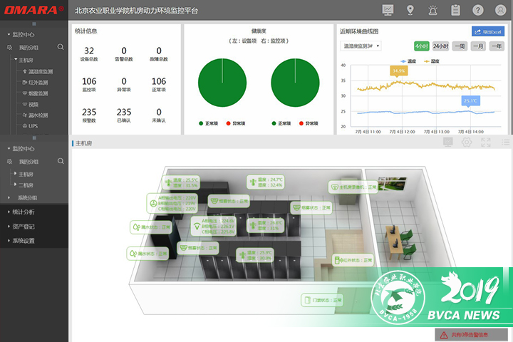 該項目投入資金9.5萬元,采用南寧邁世智慧機房監控系統,集成三相市電、UPS、精密空調、溫濕度、攝像機、門禁和消防設備的監控數據接入,具有微信和短信報警及查詢功能,可幫助信息中心實現對兩個核心機房環境7*24小時的有效監控,從而進一步提高了系統運維保障能力。