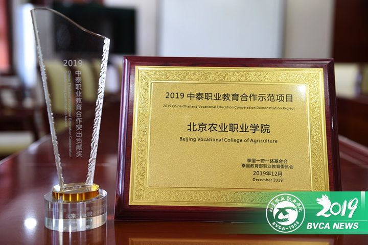 我院因成功設立“北京農業職業學院泰國分院”、”中泰農業職業學院”和“中泰農業實用技術研發中心”,在培養泰國農業急需的現代智慧農業技術技能人才方面做出的突出貢獻,被泰國教育部職業教育委員會和泰國“一帶一路”基金會授予“2019中泰職業教育合作突出貢獻獎”,”中泰農業職業學院”人才培養項目被評為“中泰職業教育合作示范項目”。泰國教育部職業教育委員會副秘書長巴塔瑪·伊拉瓦妮女士和泰國”一帶一路”基金會主席頌德通猜大師為我院頒發了獎杯與獎牌。