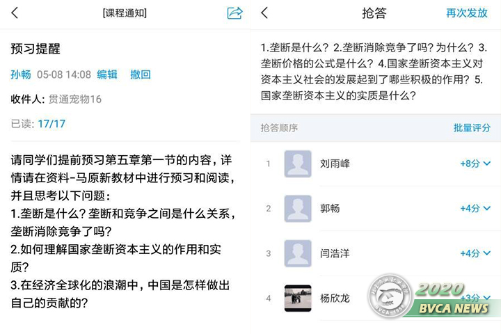 孫暢老師以“問題探究式”教學法為線索,課前在學習通平臺發(fā)布預習通知,提出貫穿課程的思考題。課上,運用思維導圖方式幫助學生建立起壟斷資本主義形成與發(fā)展的基本框架,引導學生深入思考。課程中,通過觀看視頻并利用搶答形式引出與預習教材和視頻相關(guān)的問題,使學生在設問和釋問的過程中萌生自主學習的動機和欲望,更加深入的理解問題。