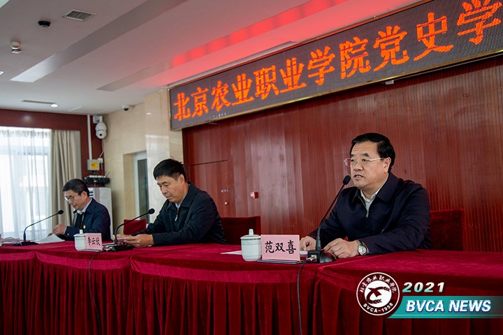 會上,黨委副書記馮學會同志宣讀了《北京農業職業學院關于黨史學習教育的實施方案》和《北京農業職業學院開展“進村入戶走基層”三年專項行動方案》。
