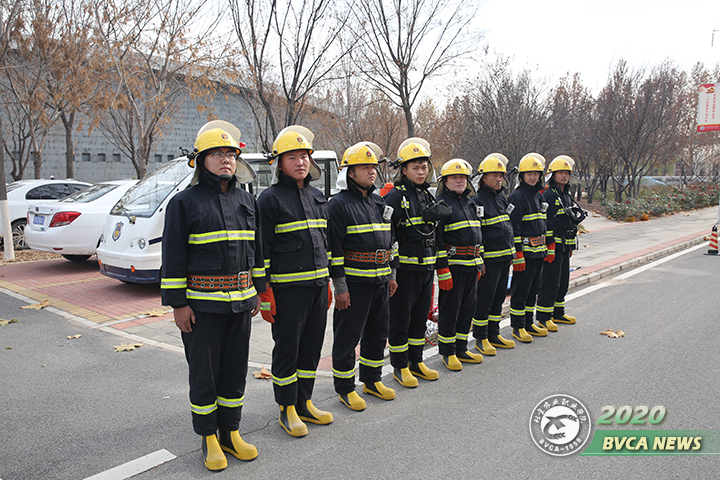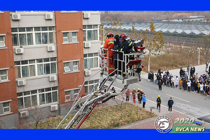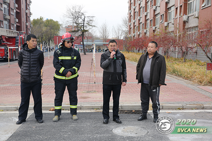 11月25日中午12:30,隨著演練總指揮、黨委副書記馮學會宣布演練開始,南校區學生公寓2、3號樓學生消防疏散演練正式拉開序幕。房山消防救援支隊大學城消防站副站長黃山帶消防水車和高層疏散云梯車各1臺到場指導并參與高層救援疏散演練。南校區各系部書記、學工部、后勤管理處、學辦主任、輔導員到場指揮。
