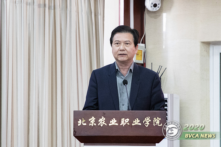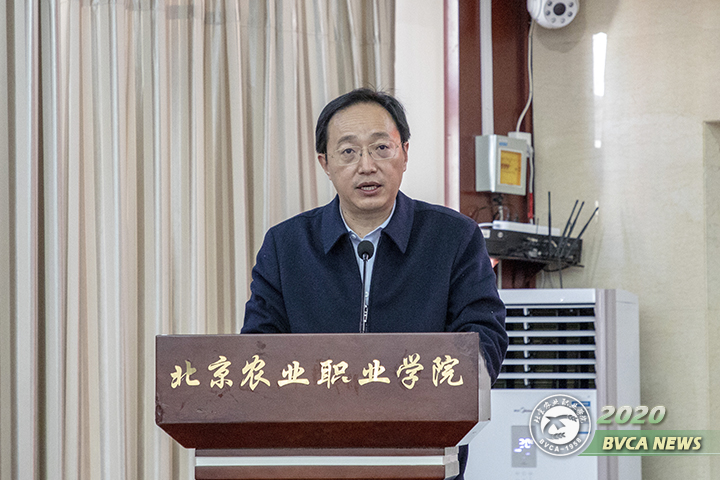 北京市教委一級巡視員黃侃講話,對學院工作提出三點希望。一是爭做全國同類院校的“領頭雁”,二是爭做北京高職教育改革的“排頭兵”,三是爭做培養北京鄉村振興人才的“主陣地”。