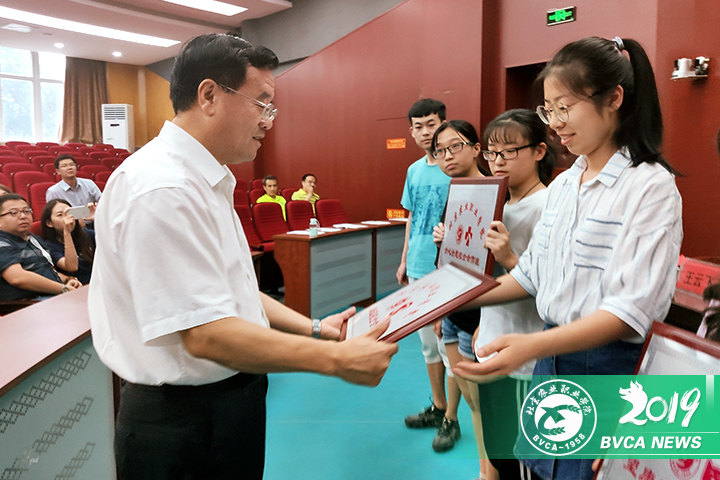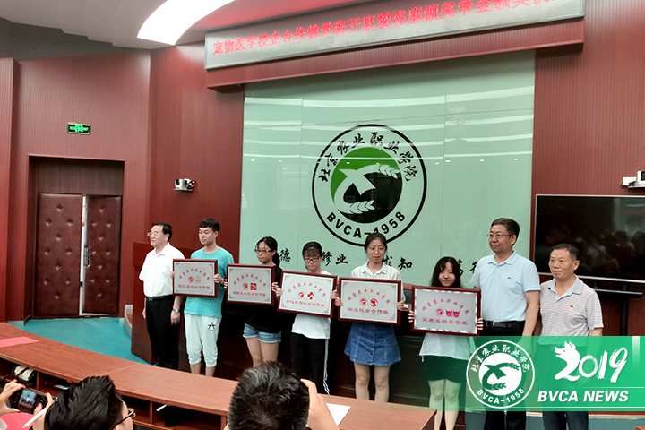 范雙喜同志為校企合作教學班授牌,并向寵物醫學專業2016級馬瑛杰等9名學生頒發了獲獎證書和獎金。