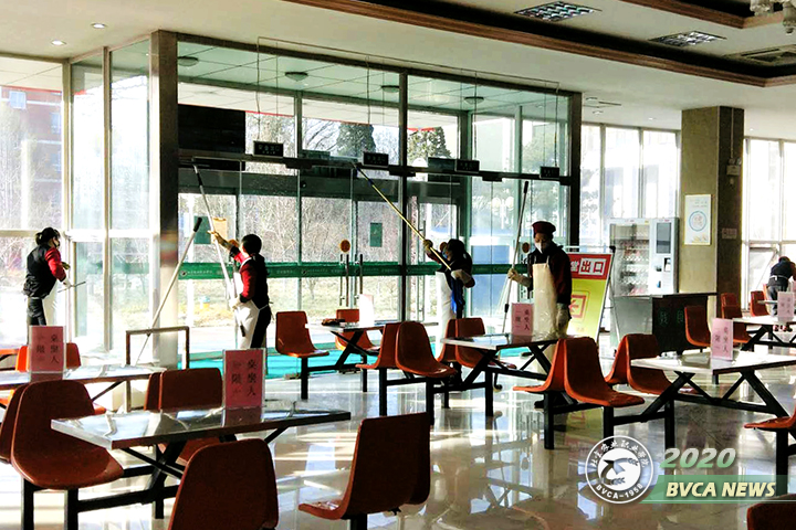 精細餐廳衛(wèi)生,雕琢就餐環(huán)境。面對21號職工返崗上班,物業(yè)人員積極做好餐廳衛(wèi)生準備工作。連續(xù)兩天從上午7點至下午17點,對洗消間、前廳、門窗、玻璃、吊燈進行細致打掃、精心擦拭,不留一點衛(wèi)生死角,力求餐廳環(huán)境衛(wèi)生的精益求精,為師生打造干凈整潔的就餐環(huán)境。