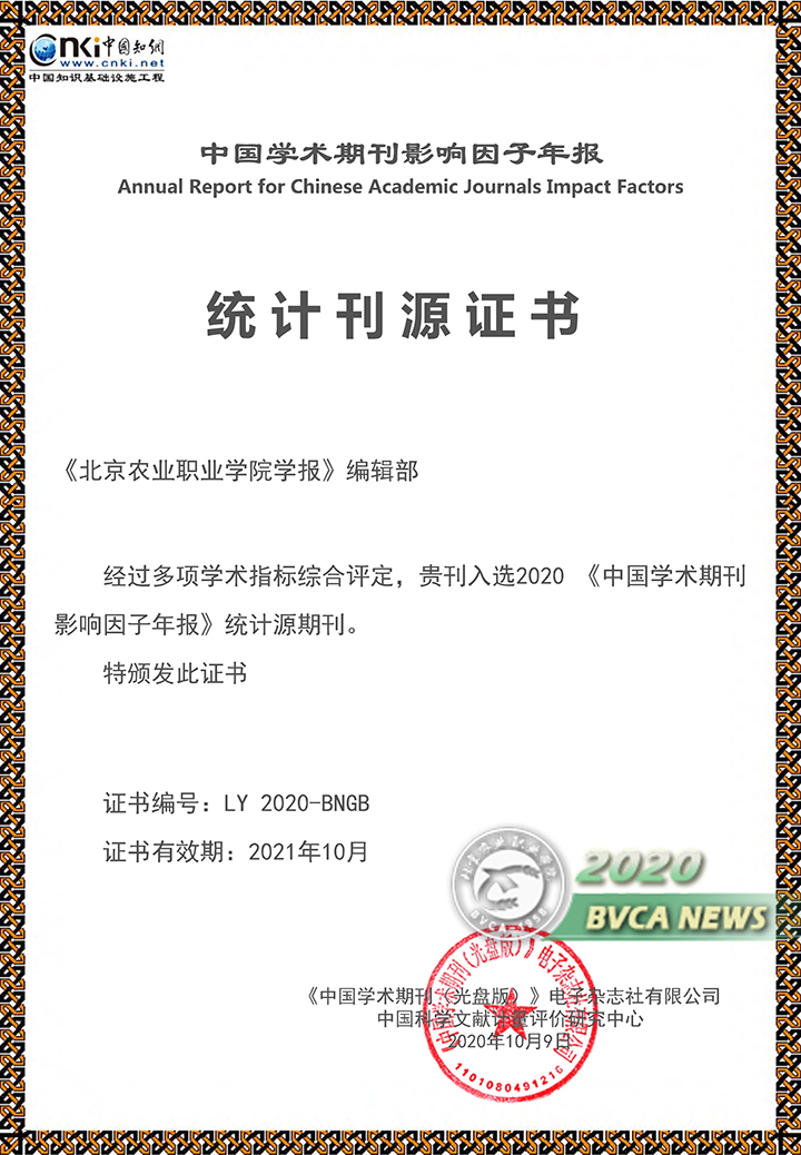 根據(jù)《中國學(xué)術(shù)期刊(光盤版)》電子雜志社有限公司和中國科學(xué)文獻(xiàn)計(jì)量評價(jià)研究中心聯(lián)合發(fā)布的《中國學(xué)術(shù)期刊影響因子年報(bào)(人文社會科學(xué)?2020版)》數(shù)據(jù)顯示,2019年《北京農(nóng)業(yè)職業(yè)學(xué)院學(xué)報(bào)》期刊綜合影響因子為0.306,比2018年同比增長16.35%,學(xué)報(bào)的學(xué)術(shù)影響力進(jìn)一步提升。