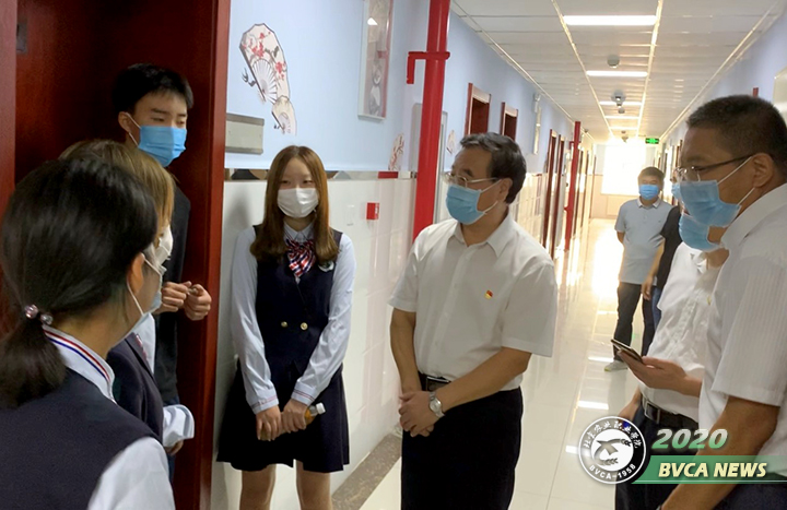 9月6日,范雙喜同志到北苑校區(國際教育學院)對迎新工作進行指導,在新生宿舍看望了2020級新生,親切地詢問新生入學情況、生活習慣以及來校后的感受,鼓勵學生以飽滿的精神狀態投入到新學期的學習生活中。副書記馮學會、副院長程文華及有關部門負責同志參加。