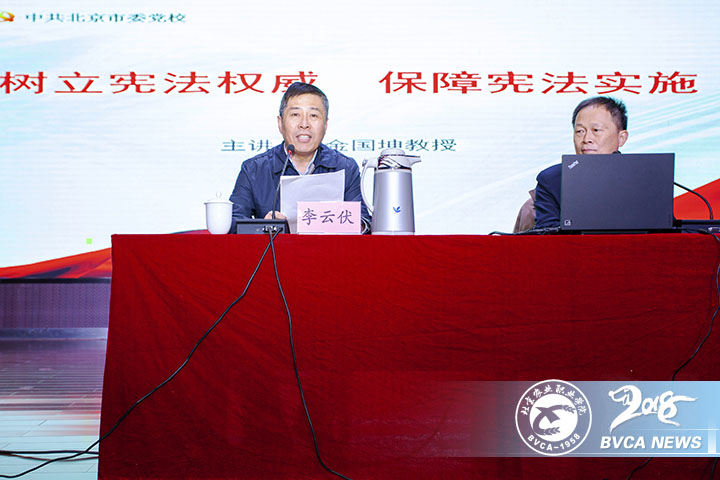 金國坤教授圍繞“樹立憲法權威,保障憲法實施”,從憲法的地位和作用、憲法的制定和修改、憲法實施的保障等三個方面做了全面深刻的論述。內容豐富,思想深刻;既站位高遠,又很接地氣,受到與會同志一致好評。