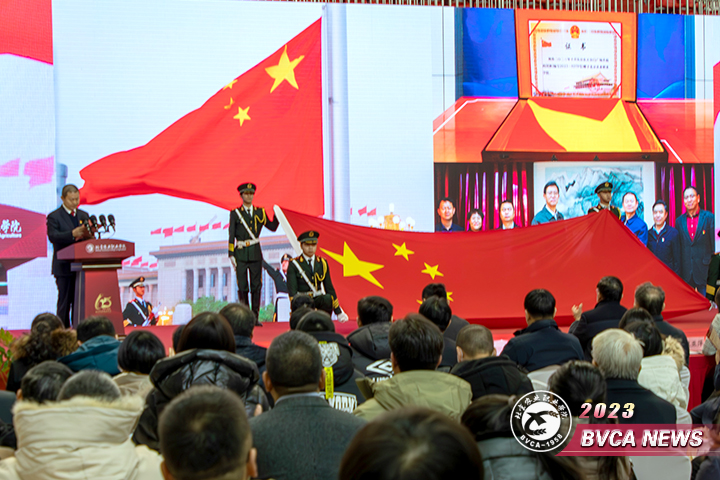北京農業職業學院黨委書記周志成主持大會。系統闡述了學校紅色基因的歷史脈絡和在新時代的生動實踐。介紹并展示了天安門地區管理委員會贈送的建校紀念日在天安門廣場上升起的國旗。