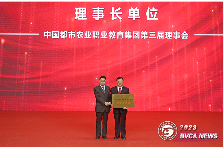 柳長安為中國都市農業職業教育集團第三屆理事長單位授牌,范雙喜為常務副理事長單位授牌。