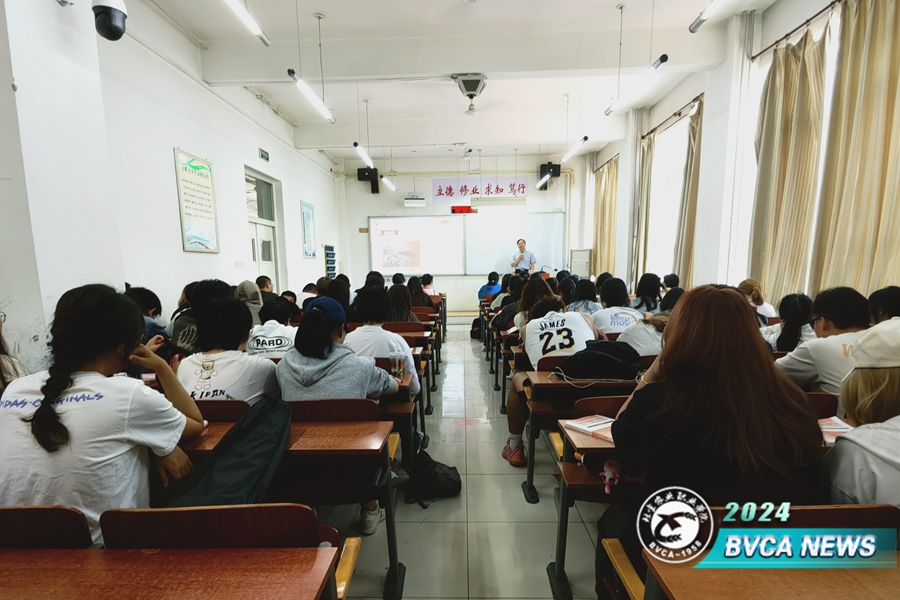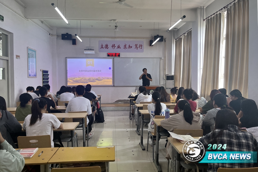 6月6日,副院長程文華以“聚焦鄉村振興 賦能服務京郊”為主題為動物科技學院牧醫2312和2313班學生講授思政課。他系統梳理了北京農業農村基本情況,并向同學們詳細介紹了學校近年鄉村振興工作情況以及在首都鄉村振興工作中做出的突出貢獻,使學生更加堅定了專業自信和職業自信。
