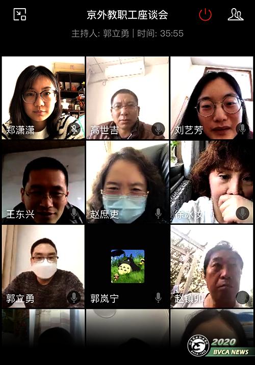 座談會上,校區領導詢問了京外教職工目前所在地的疫情情況、身體情況以及教師線上教學、班主任管理貫通學生、留學生等情況,并向教職工了解現在生活、工作中的困難。