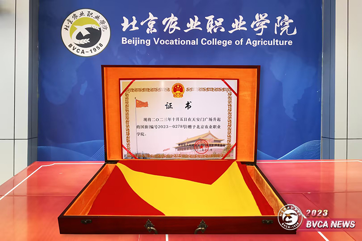 周志成代表學校全校師生對北京市人民政府天安門地區管理委員會贈送珍貴國旗表示由衷感謝。他簡要介紹了學校歷史沿革、辦學特色、人才培養等基本情況,著重介紹了學校的紅色基因和一以貫之的人才培養目標。他強調,作為北京市唯一一所獨立設置的農業職業院校,農職院從誕生之日起就鐫刻了濃濃的紅色基因,在紅色基因感召下,65年來農職人愛農強農,愛軍學軍,愛國報國,愛黨興黨,在“為黨育人,為國育才”的生動實踐中建功立業。他表示,2023年10月5日是學校建校65周年紀念日,能夠獲贈建校紀念日當天在天安門升起過的國旗,對于全校師生來說具有非凡的紀念意義和精神引領價值,為學校紅色基因注入了一抹鮮艷的國旗紅。學校將嚴格按照《國旗法》相關規定,妥善保存這面珍貴的國旗,并將充分發揮這面國旗的作用,進一步開展好愛國主義教育,激發廣大師生愛國熱情,強化農職人使命擔當,讓愛國主義的偉大旗幟始終在農職師生心中高高飄揚。