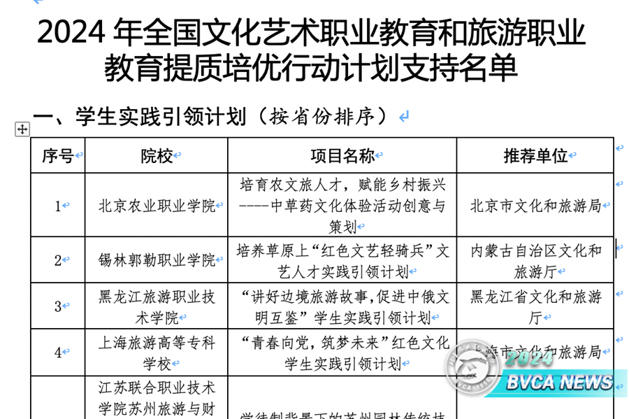 8月27日,文化和旅游部辦公廳公布了2024年全國文化藝術職業教育和旅游職業教育提質培優行動計劃支持名單,我校《培育農文旅人才,賦能鄉村振興——中草藥文化體驗活動創意與策劃》項目榮獲學生實踐引領計劃支持,且為北京市唯一入選的項目。