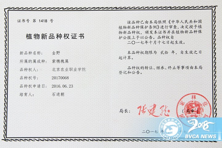 7.園藝系石進朝教授選育的“金野”紫穗槐被國家林業局授予植物新品種權(3.16)