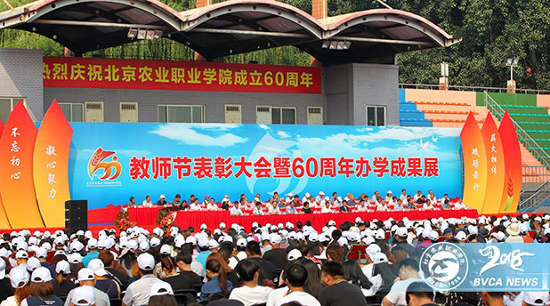 10日上午,北京農業職業學院教師節表彰暨60周年辦學成果展大會在學院體育場舉行。北京市政府副秘書長陳蓓、市農村工作委員會副主任馬榮才、房山區委書記陳清、房山區區長郭延紅和兄弟院校、合作企業等各方面專家、領導、嘉賓出席大會。學院歷屆校友和老領導以及廣大師生歡聚農職,共襄盛舉。