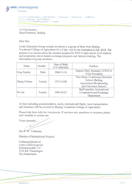 我院應荷蘭朗蒂斯教育集團邀請,擬于2018年7月9日-13日派出團組赴荷蘭進行學生專業交流及新型農民培養工作訪問,在外停留時間5天。相關信息公示如下:
