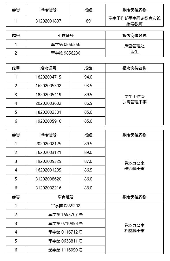 1.請參加面試的軍轉干部務必按時到達面試地點,抽簽決定面試順序;若不能準時參加面試的人員,請于面試前一天16:00之前告知,并將按筆試成績遞補。未參加面試,以及面試開始30分鐘后未到的,視為自行放棄面試資格。