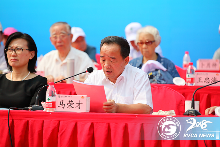 北京市農村工作委員會副主任馬榮才講話。他肯定了學院過去為首都“三農”事業的發展做出了突出貢獻,希望以60周年教學成果展為新的起點,進一步提升辦學水平,為區域經濟社會發展提供有效的人才支撐、科研支持與社會服務,做出新的更大的貢獻。