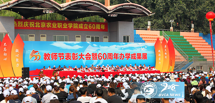 六十載桃李盈門慶華誕,一甲子芝蘭滿室樹輝煌。9月10日上午,北京農業職業學院教師節表彰暨60周年辦學成果展大會在學院體育場舉行。北京市政府副秘書長陳蓓、市農村工作委員會副主任馬榮才、房山區委書記陳清、房山區區長郭延紅和兄弟院校、合作企業等各方面專家、領導、嘉賓出席大會。學院歷屆校友和老領導以及廣大師生歡聚農職,共襄盛舉。