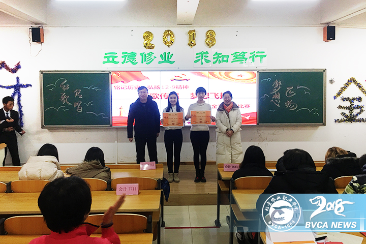 12月13日,財(cái)會(huì)金融系舉辦以“紅歌傳唱,夢(mèng)想飛揚(yáng)”為主題的班級(jí)合唱比賽,在校七個(gè)班參與比賽。系黨總支書(shū)記敬燕萍、學(xué)生工作部副部長(zhǎng)關(guān)偉參加活動(dòng)并為獲獎(jiǎng)班級(jí)頒獎(jiǎng),學(xué)生處、財(cái)金系相關(guān)教師及學(xué)生代表?yè)?dān)任評(píng)委。