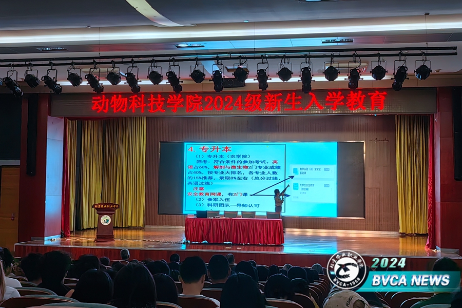 動物科技學(xué)院于 9 月 4 日在報告廳舉行 2024 級新生入學(xué)教育,動科學(xué)院領(lǐng)導(dǎo)班子、輔導(dǎo)員、班主任及 479 名新生參加。院長周珍輝以近幾年優(yōu)秀畢業(yè)生的風(fēng)采為例,為新同學(xué)講開學(xué)第一課,鼓勵新生以優(yōu)秀畢業(yè)生為榜樣,提高自我管理能力,樹立奮斗目標,學(xué)好本領(lǐng),實現(xiàn)人生價值。副書記齊軍喆從遵守紀律和安全的角度講解了《學(xué)生手冊》部分內(nèi)容,并對新生軍訓(xùn)進行動員。黨總支書記劉洪超從立大志、求知識、強身體和心中充滿愛四個方面對新同學(xué)提出希望和要求。今后一段時間,新生教育將組織學(xué)習(xí)《學(xué)生手冊》、主題班會等系列活動,學(xué)辦老師將為新同學(xué)答疑解惑。