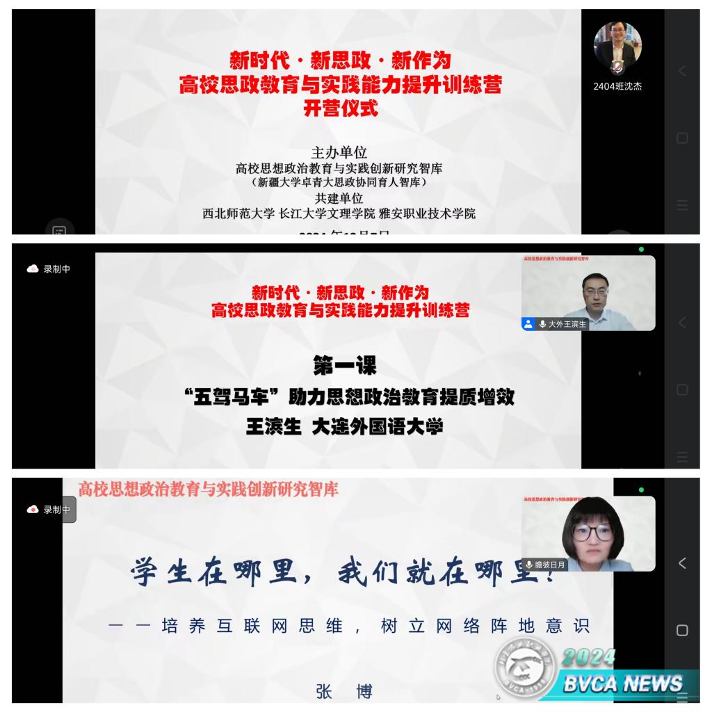 12月7日,“新時代 新思政 新作為—高校思政教育與實踐能力提升”訓練營以騰訊會議形式正式開營,我校33名輔導員和學工部老師參加。本次訓練營由高校思想政治教育與實踐創新研究智庫(新疆大學卓青大思政育人智庫)舉辦,吸引了150所高校325名老師參與,旨在學習貫徹黨的二十屆三中全會和全國教育大會精神,探索思政教育新路徑,提升教育工作者的實踐能力和創新能力。