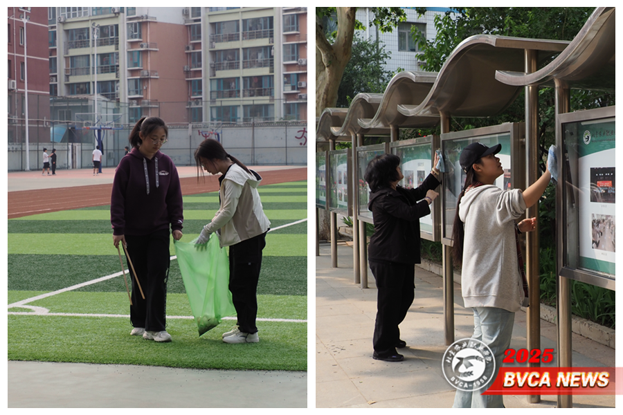 黨員團(tuán)員分成四個(gè)組,以實(shí)際行動為校園“梳妝美顏”。綠化區(qū),黨員一邊翻地,一邊耐心向團(tuán)員傳授干活技巧。宣傳欄處,師生密切配合,仔細(xì)擦洗玻璃、板面。小賣部外,大家認(rèn)真清掃,用墩布反復(fù)擦拭地面。“清撿小隊(duì)”穿梭各個(gè)角落,認(rèn)真清理紙屑、煙頭、包裝袋、竹簽等垃圾雜物。